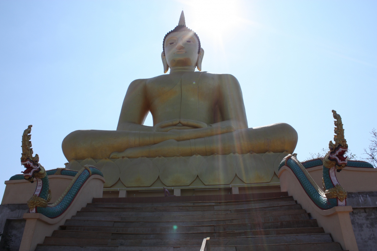 ラオ日大橋からかなり目立つ金色のブッダ。まったく情報ないけど見えてるんだからまぁいけるでしょうと軽い気持ちで歩き出す。
