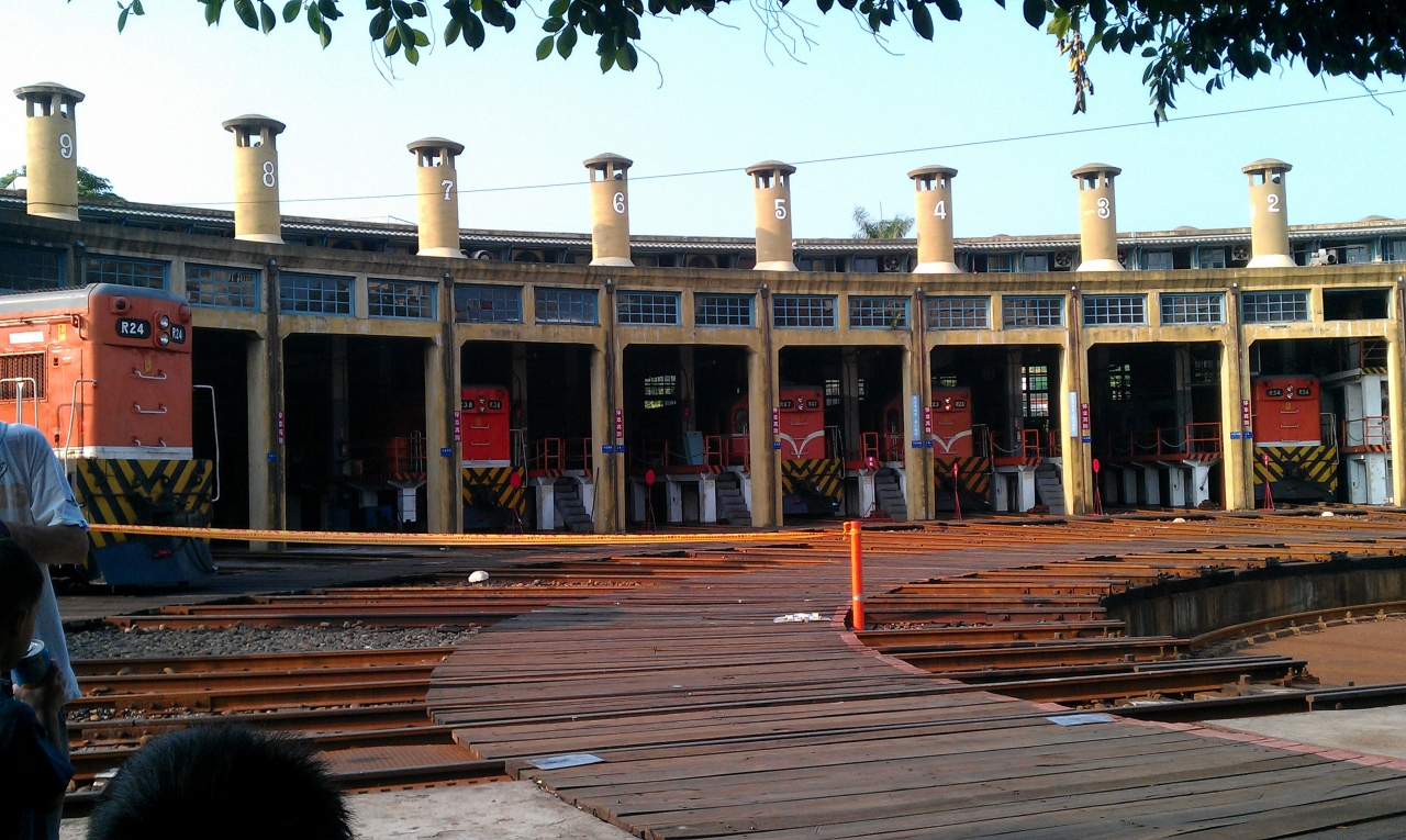 鉄道マニア必見ですね。台湾国内でも唯一の現役扇形機関庫。SLもいます。
