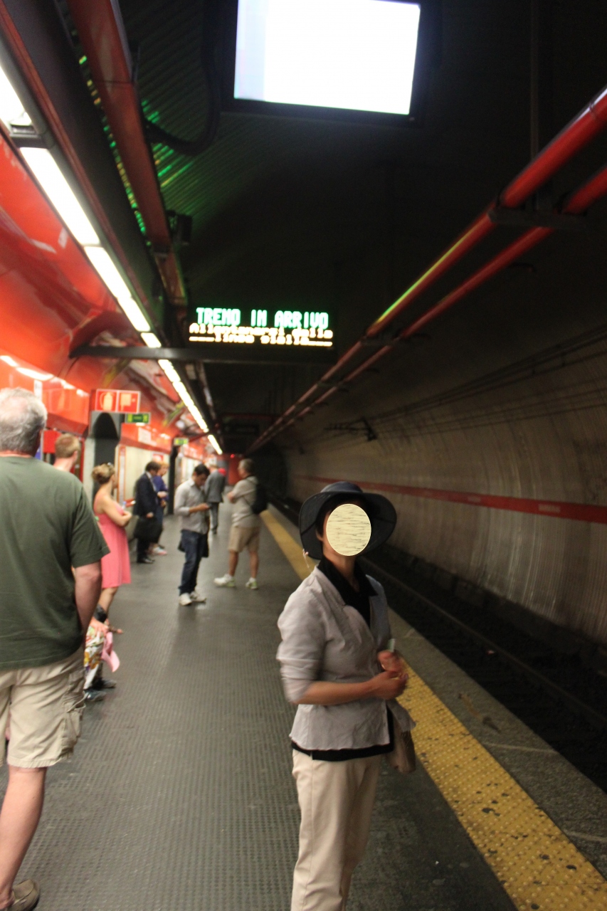 バルベニーニ駅からテルミニ駅まで乗車。乗ったのは昼間なので怖い感じはしないが、全体的にあまりきれいでなく、他のヨーロッパの地下鉄に比べても安心感がない。危ないと聞かされているせいだろうか。乗り降り時には、スリなどへの注意が大事と身構えて乗った。