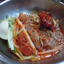 ミョンドンの中心部にあり、非常にアクセスが良かったです。お店も綺麗で、多くの地元客で賑わっていました。今回は、水冷麺とフェ冷麺、手作り餃子を注文。