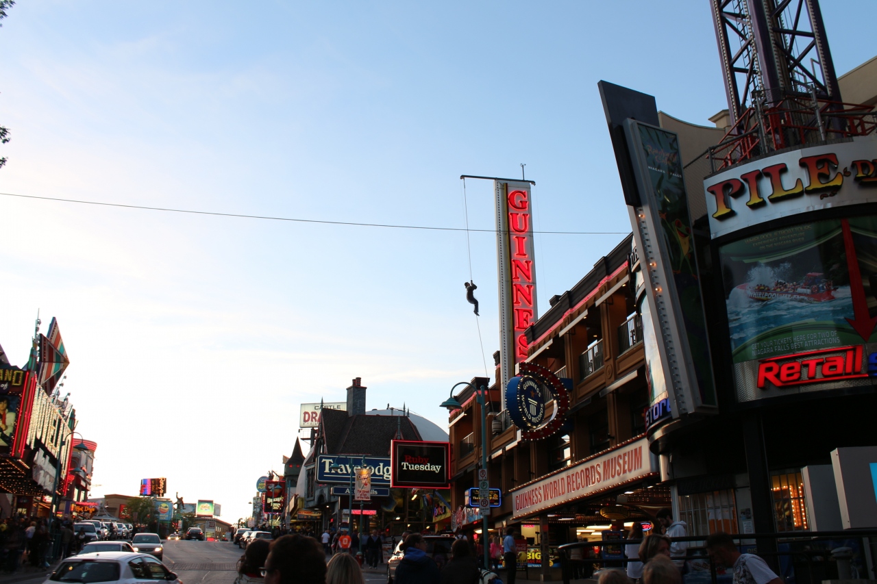 ナイアガラフォールズエリアの繁華街。夜になるとその様子が一層わかると思います。賑やかな通りであることは間違いないのですが、目玉というものがありません。レジャー施設と飲食店が多数ならんでいるという印象しかありません。