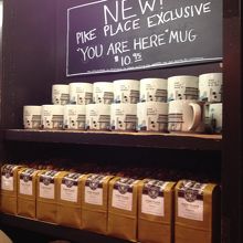1号店限定商品を買う人で列ができており、コーヒーを買うだけなら、すぐ近くに大きな店舗があるので、そちらで買った方がよいと思います。