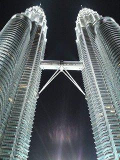 夜空をバックに見るこのツインタワーはどこかCGのような現実味のない感じがしました。