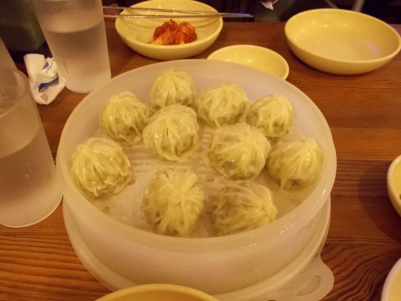 いつも行列の「明 洞餃子」今回はスムーズに1階のテーブルに案内されました。カルクックスと餃子を一人前づつでW16,000 ドリンクは無し(涙)お茶で我慢…女性2名ならこの位の量で充分だと思います。サービスのキムチはかなり辛め、辛いの苦手の方は要注意です。