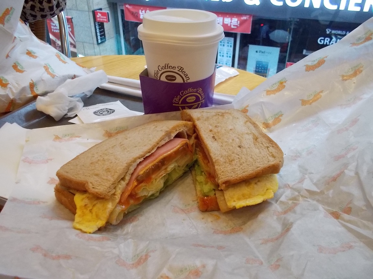 友達オススメの「ボボントースト」以前は明洞のメインストリートに出ていた屋台のおばちゃんのトーストがお気に入りでしたが、ここボボントーストのはレタスたっぷり食べ応えがあります。明洞のホテルからなら歩いて行けますね。行った時は日本からのお客さんばっかりでした(笑)