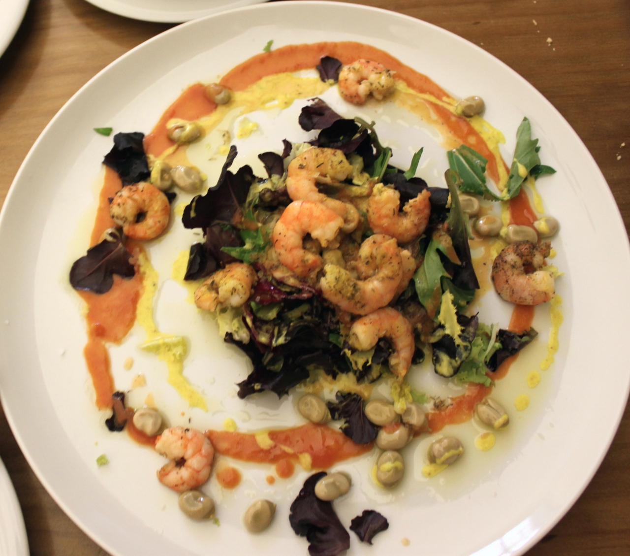 注文したのはニンニクのスープ、(5.5ユーロ)シーフードサラダ(12)生ハム(7)野菜の煮込み(5)オックステールのフライ(9)コーヒー(1.2)ワイン(2×2)で料金は計44.3ユーロ