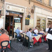 この店の前ではランチ7.5ユーロと、目を引く看板と店員さんの呼び込み。