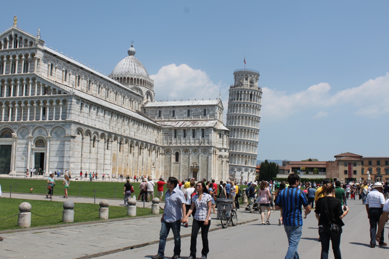 多くの観光客でいっぱい。日本の観光ツアーの人達にもたくさん出会った。皆、青空の下、思い思いに写真を撮ったりしている。緑の芝生が青々として気持ちよいし、これだけの広さがあると建物がとても映える。