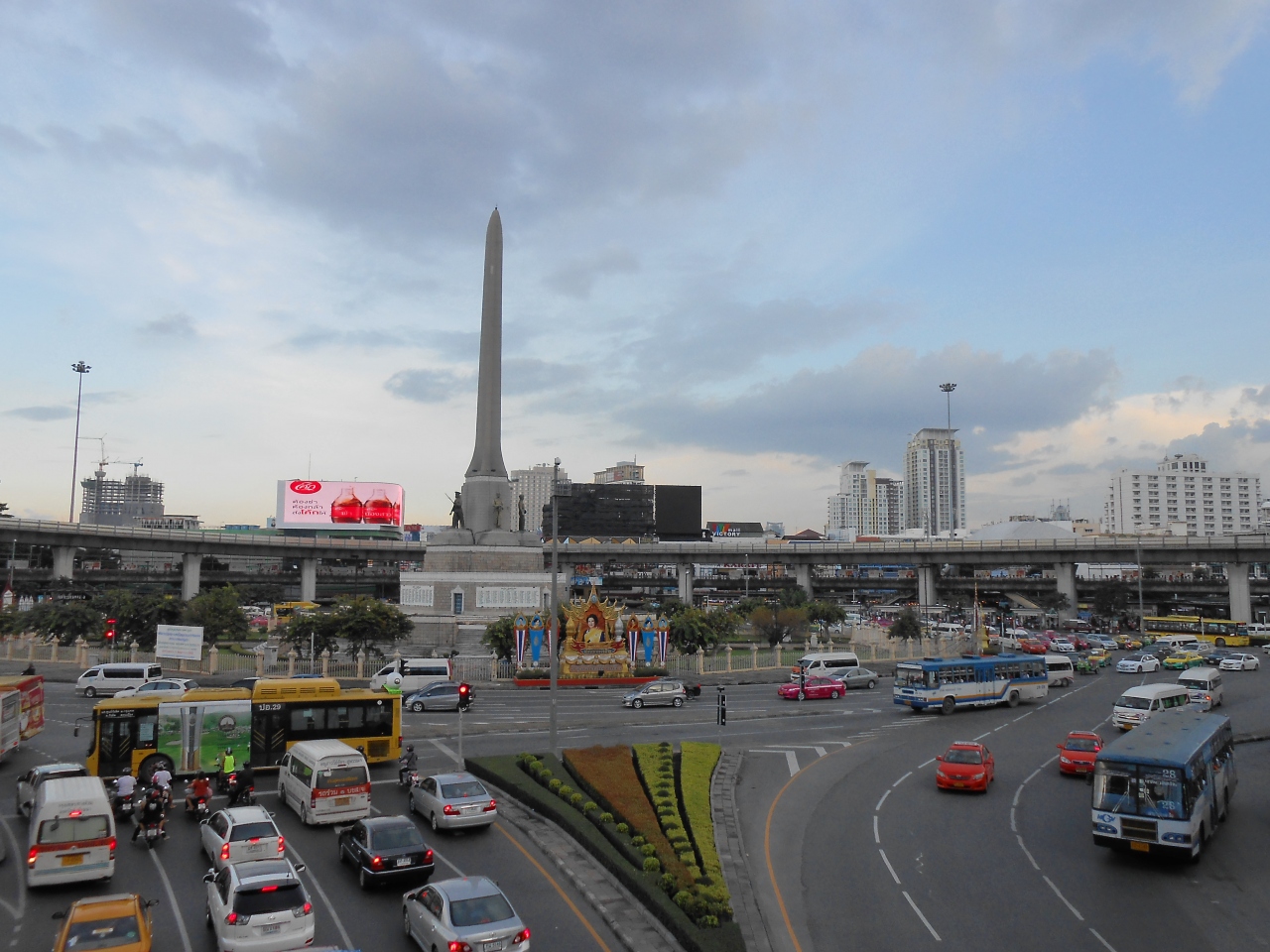 塔の周囲はロータリーになっており、BTSの他多数のバスが通り、アユタヤ行のロットゥーもここから発着しています