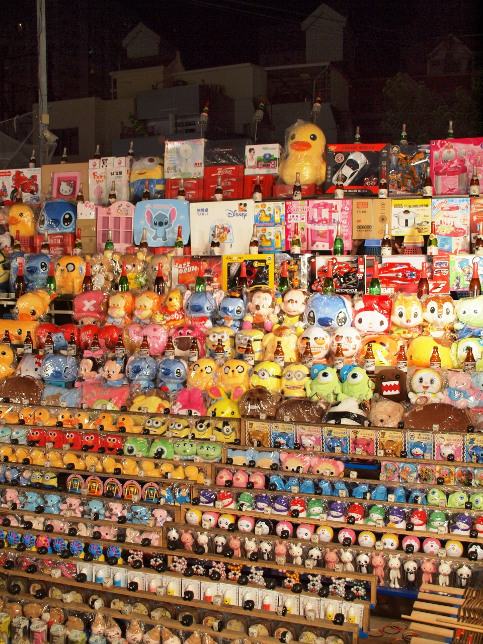夜市的なB級グルメの店がたくさん、洋服やスマホカバーやアクセサリーなど売るお店があったり、マッサージやゲームの屋台もたくさんあります。