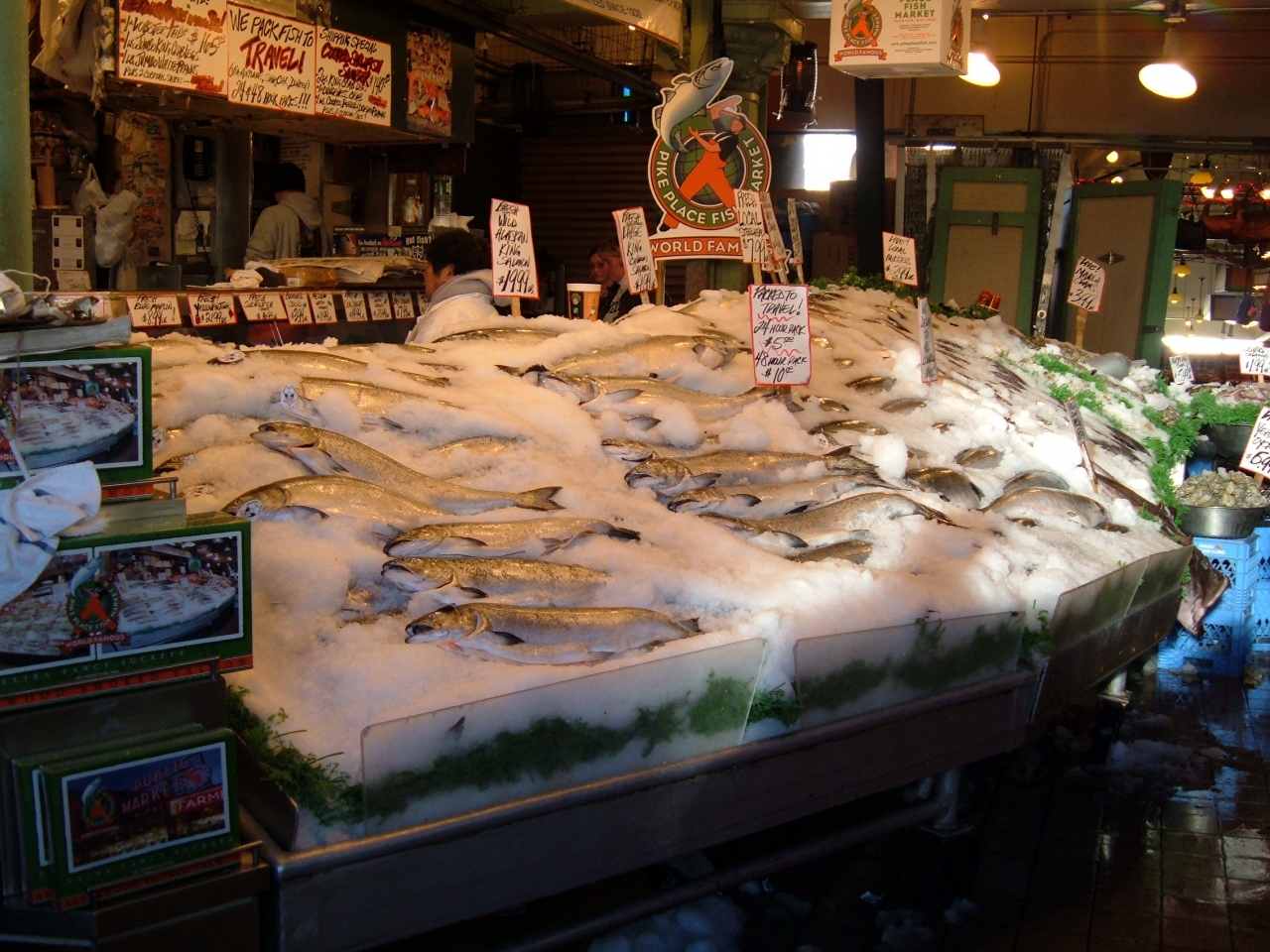 魚を買うと魚がレジまで飛んでいきまーす。店員のパフォーマンスが非常に面白いです。魚を買わなくても、そのパフォーマンスを見るだけでも十分楽しめます。シアトルは海に近く新鮮な魚がいっぱいです。すしレストランも多く、味も日本のすしに負けませんよ。