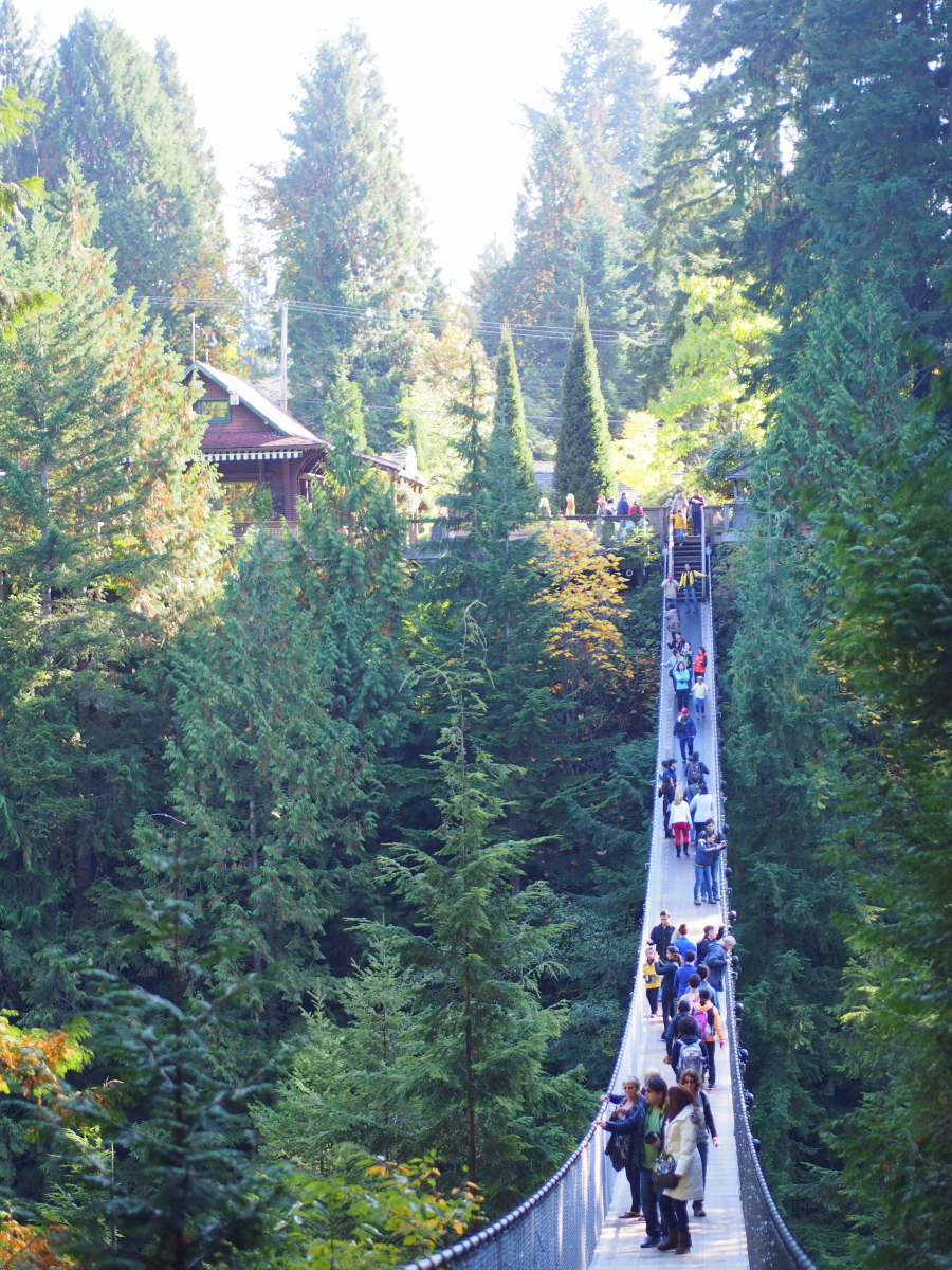 バンクーバーで有数の観光スポットです。まずは長くて揺れるつり橋にキャーキャー言いながら渓谷の向こう側に渡りましょう。