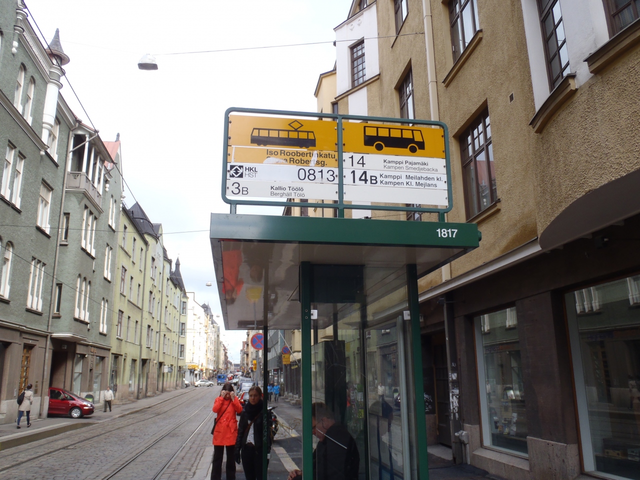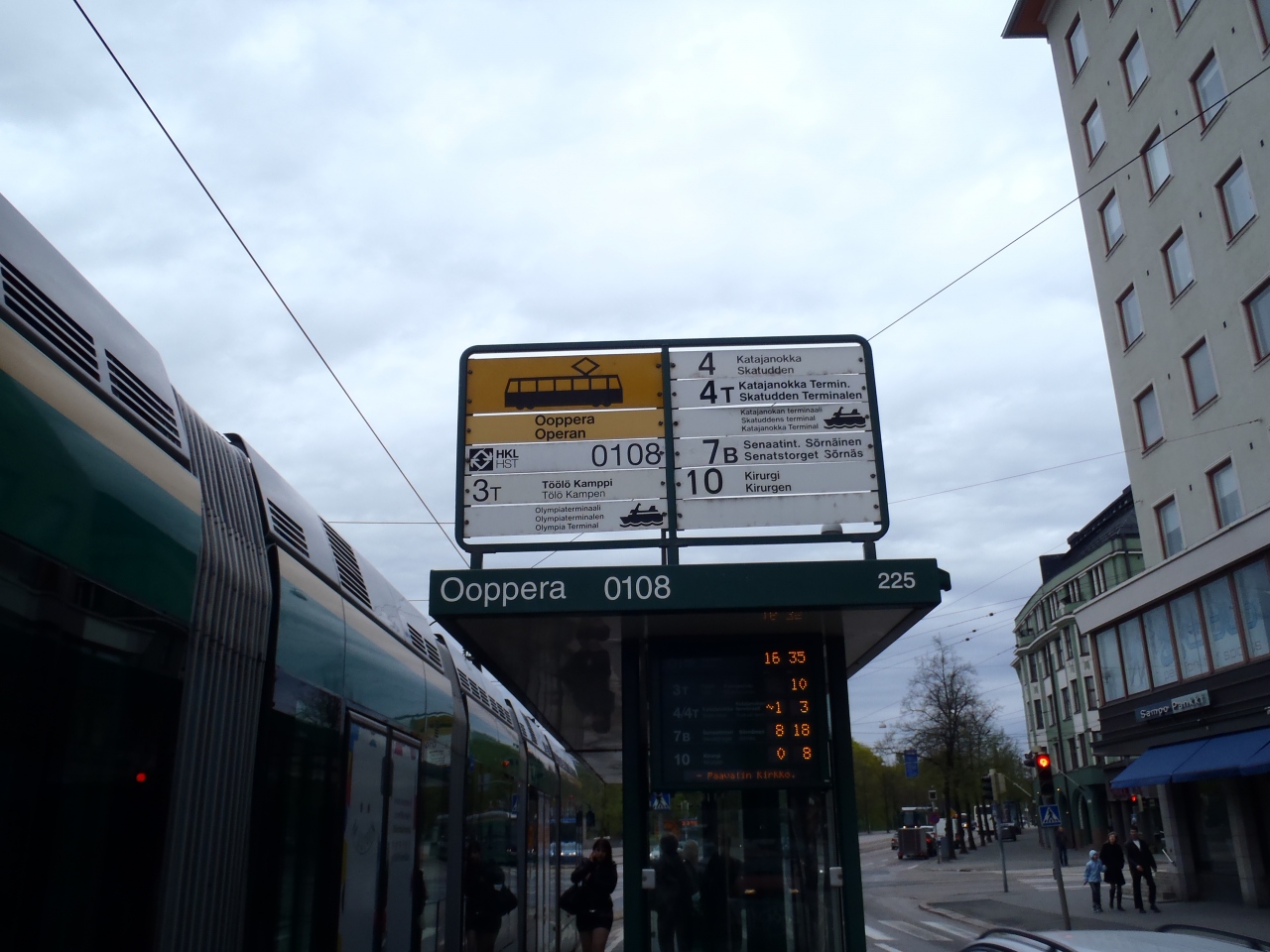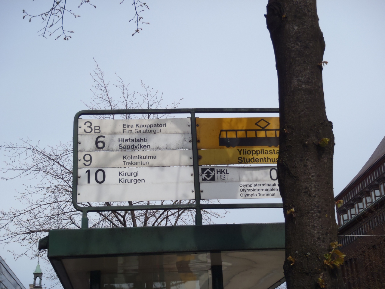 少し古い写真なので路線番号や終着駅の最新の名前をHSL(ヘルシンキ交通)のHPで確認してくださいね。