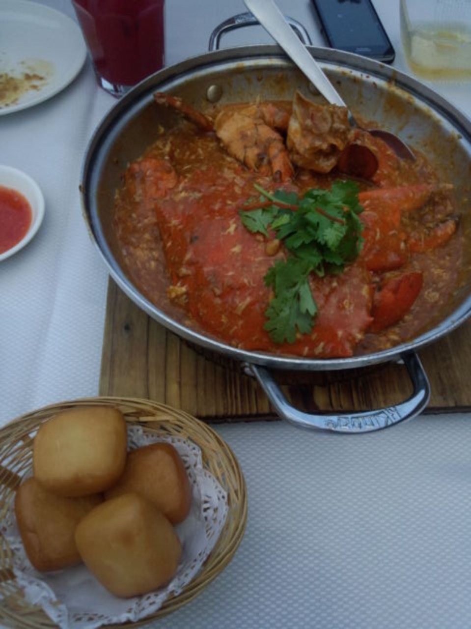 名物のチリクラブはちょっと食べづらいけれど、ソースが濃厚で美味しい!サイドで頼んだ揚げパンもサイズが小さめでいくらでも食べられるし、ソースを付けると絶品。