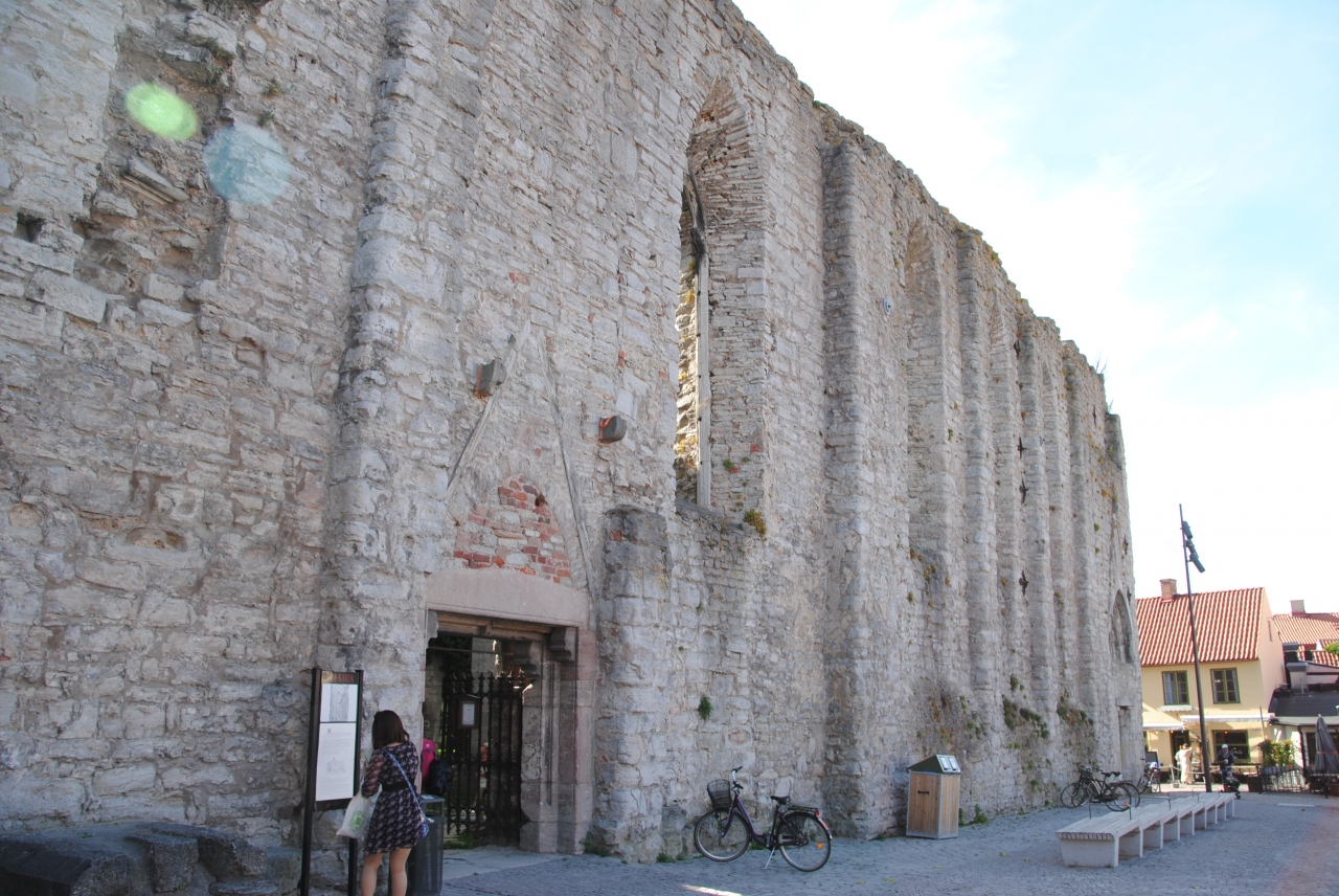 ヴィスビーの旧市街の中心にある広場に隣接した廃墟です。広場にはレストランがたくさんあり、テラス席で食事をしながら眺められます。