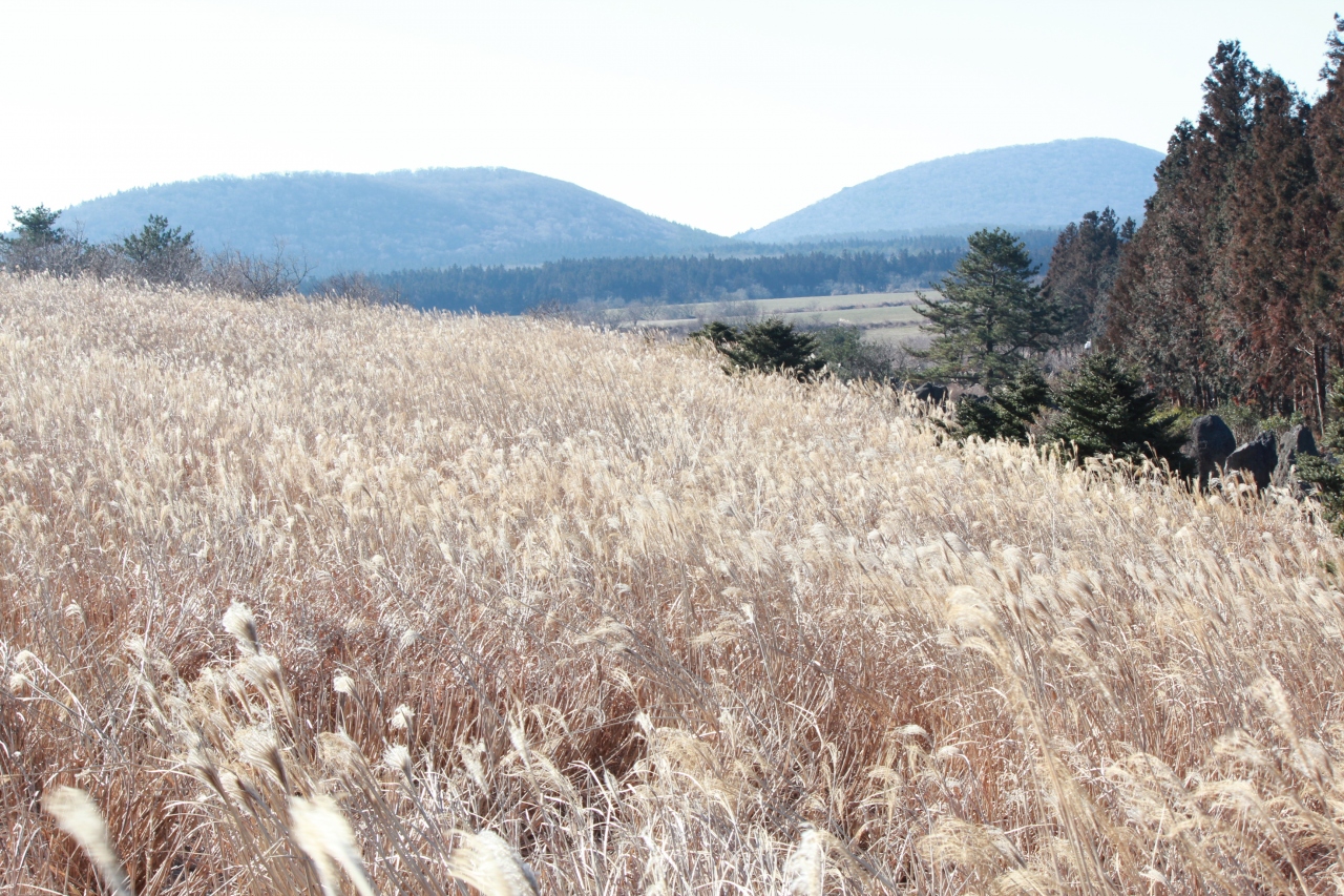 ハルラ山が見え、噴火口も見えましたが、実際にどこまでが万丈窟か、よくわかりませんでした。ただ、遊歩道の隣にススキがたくさん生えていて、きれいでした。
