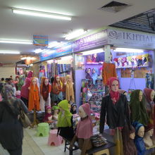 主にイスラム系の衣料品が多く、女性が頭に巻くヒジャブはかなりの数があります。