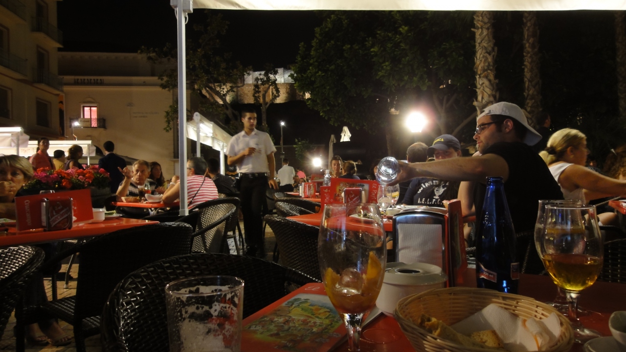 グラナダ通り沿いにお店の入り口はありますが、アルカサビリャ通り側から入ると、わりと広い敷地にたくさんの屋外テーブル席があります。