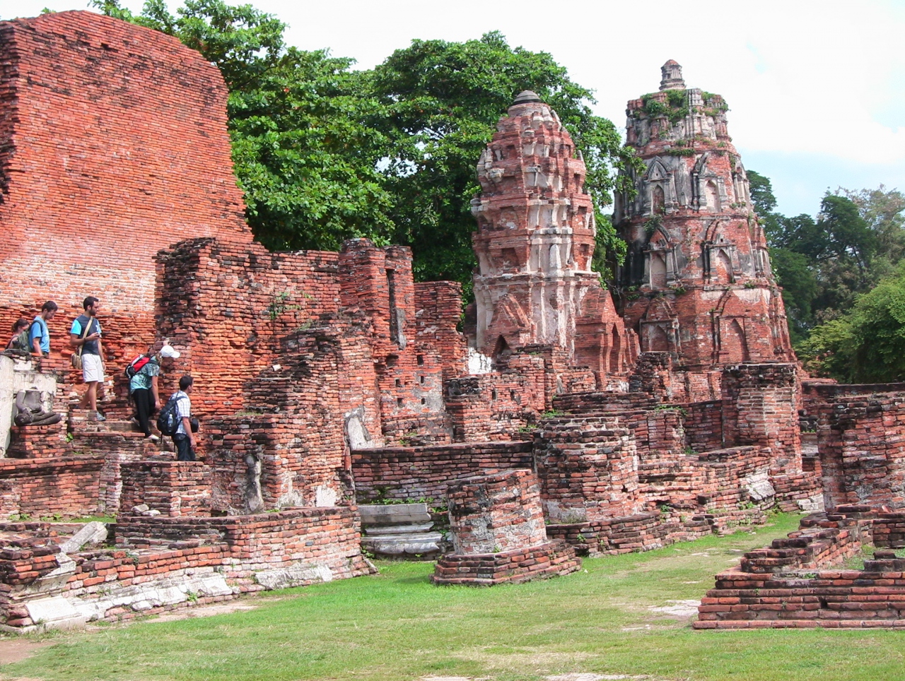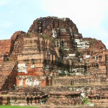 世界遺産であるアユタヤの中でも代表的な遺産の一つです。木に取り込まれてしまった仏像の頭があるのもこの寺院です。アユタヤ王朝の初期の時代に建造されましたが、ビルマの侵略によってほとんどが破壊されてしまったところです。