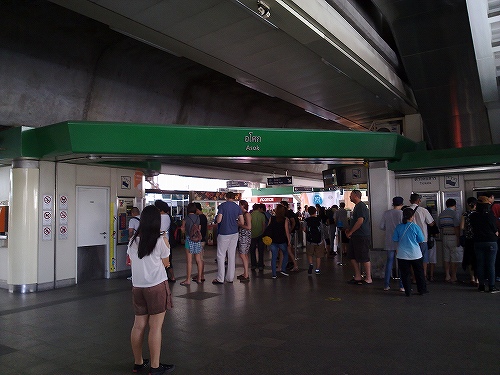 階段を降りてまっすぐ進むと、今度はスクンビット駅と看板が出てくる。そこで簡単な荷物検査をされたあと、改札えと向かう。