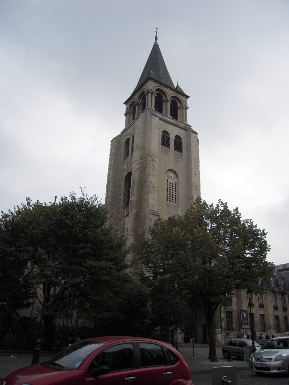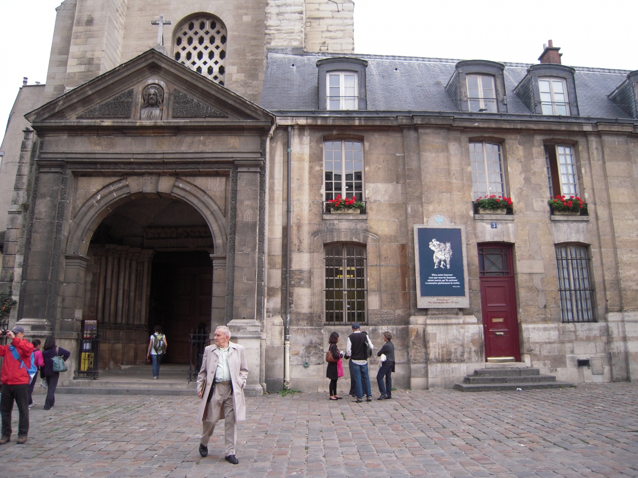 ロワイヤル橋を渡り、オルセー美術館を右に見て左に曲がり暫くセーヌ川沿いに歩き、ボナパルト通りを入って、しばらく行くとサンジェルマンデプレ教会の前に出た。