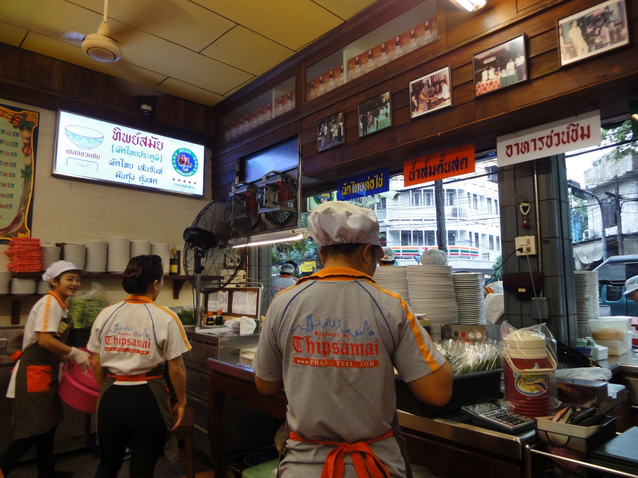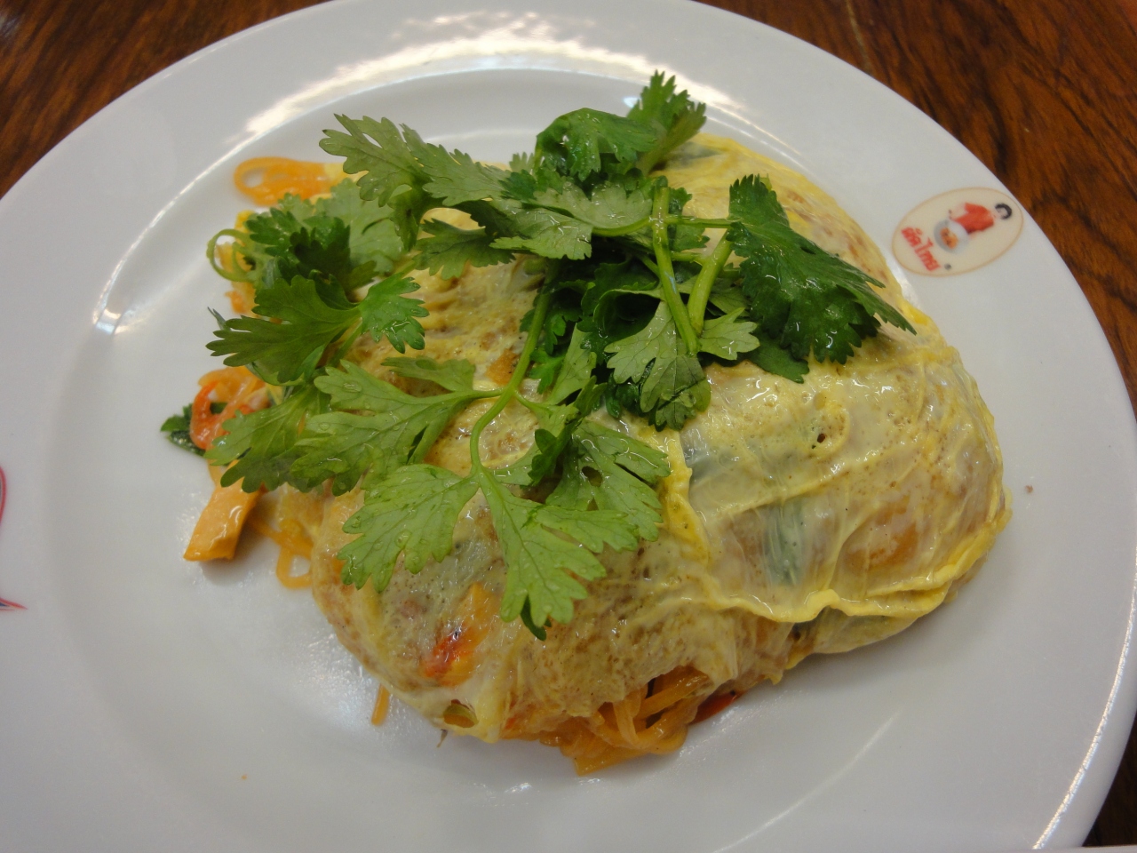 お店のお姉さんがお勧めするパッタイホーカイ(卵包みパッタイ)を70バーツで注文。