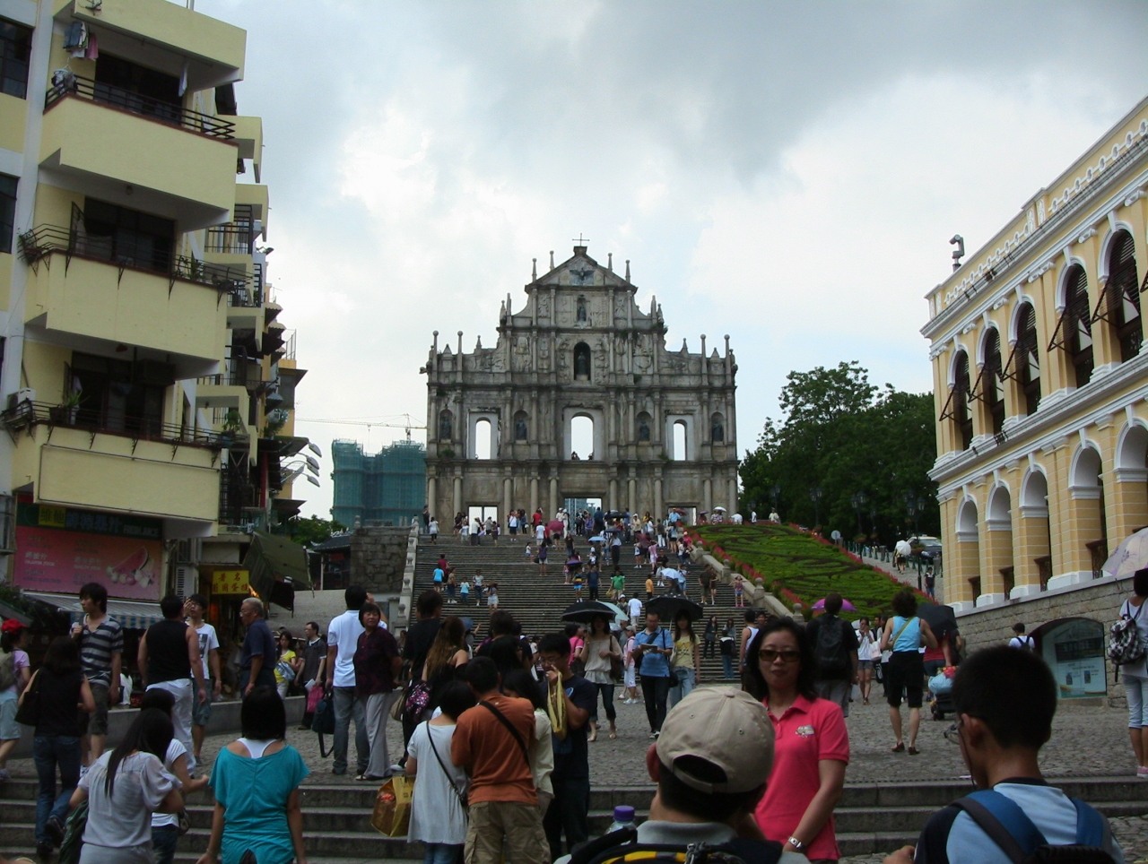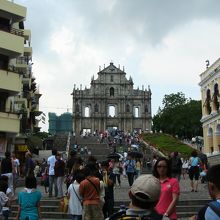 聖ポール天主堂の前の階段を降りていったところにある広場で、いつも観光客などで賑わっています。写真のように聖ポール天主堂も見えるので、私のように写真をとっている人もいました。周囲には土産物屋さんなどもありました。
