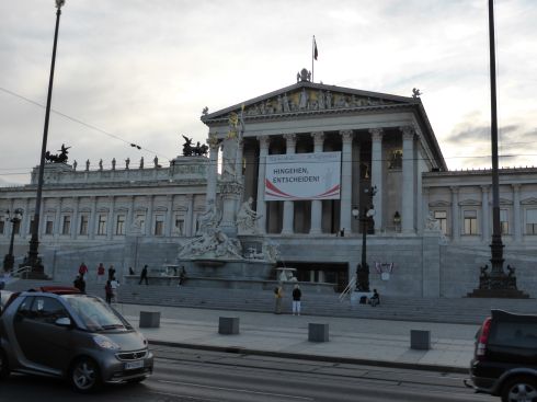 道路から国会議事堂の入り口まで高さがあり登りついたところからウィーンの町並みが少しだけ視線が広く見渡せます。