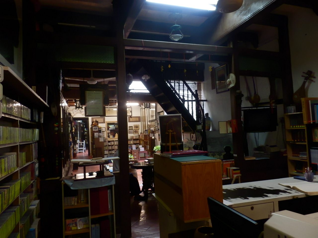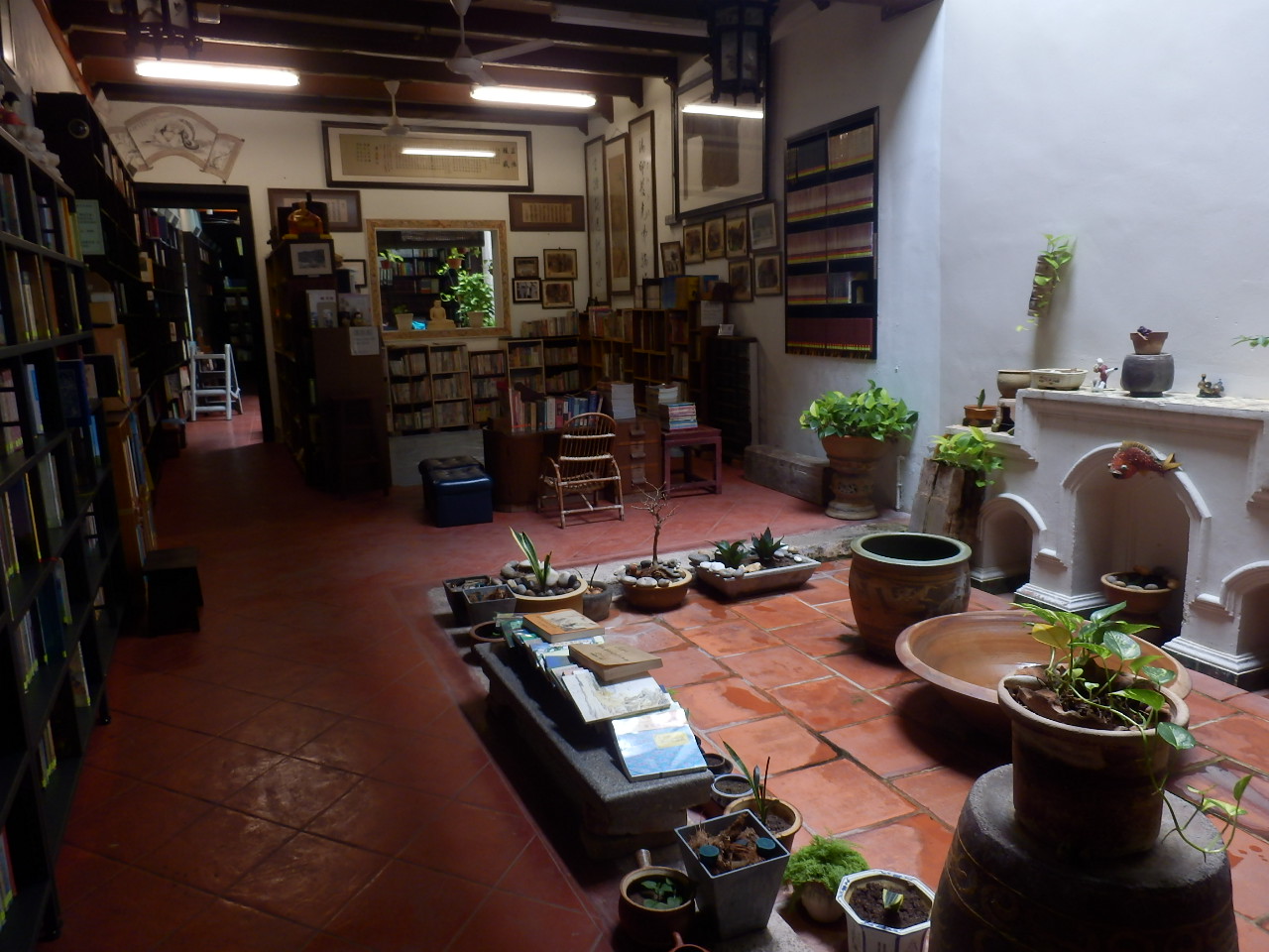 チャイナタウンの中にあるレトロなショップハウスですが、図書館と書かれた小さな看板が掲げられていたので中に入ってみました。私設の図書館のようで、本屋さんのように本棚が並び、自由に出入り出来ました。建物は典型的なショップハウスの造りで、中央に中庭があり、奥にも部屋がありました。観光客が本を借りるにはどうすれば良いかは不明ですが、本を立ち読みするのは自由みたいですし、ショップハウスを見学する目的で訪れても良いと思いました。