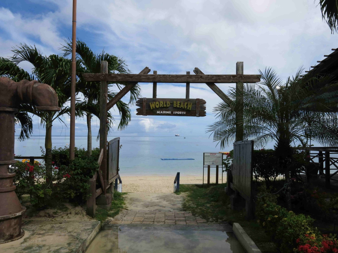 Wave Jungleに”World Beach”というアーチがあったので行ってみました。アーチをくぐると、そこは砂浜と海。遠浅の海かな?と思って入ってみたら結構水深ありますね。海草が結構多く、そこにいろんな魚が泳いでいました。ちょっと沖に「筏」のような物があり、その周辺だとさらに多くに魚にであえます。魚を鑑賞するには、シュノケールは必須ですよ!!