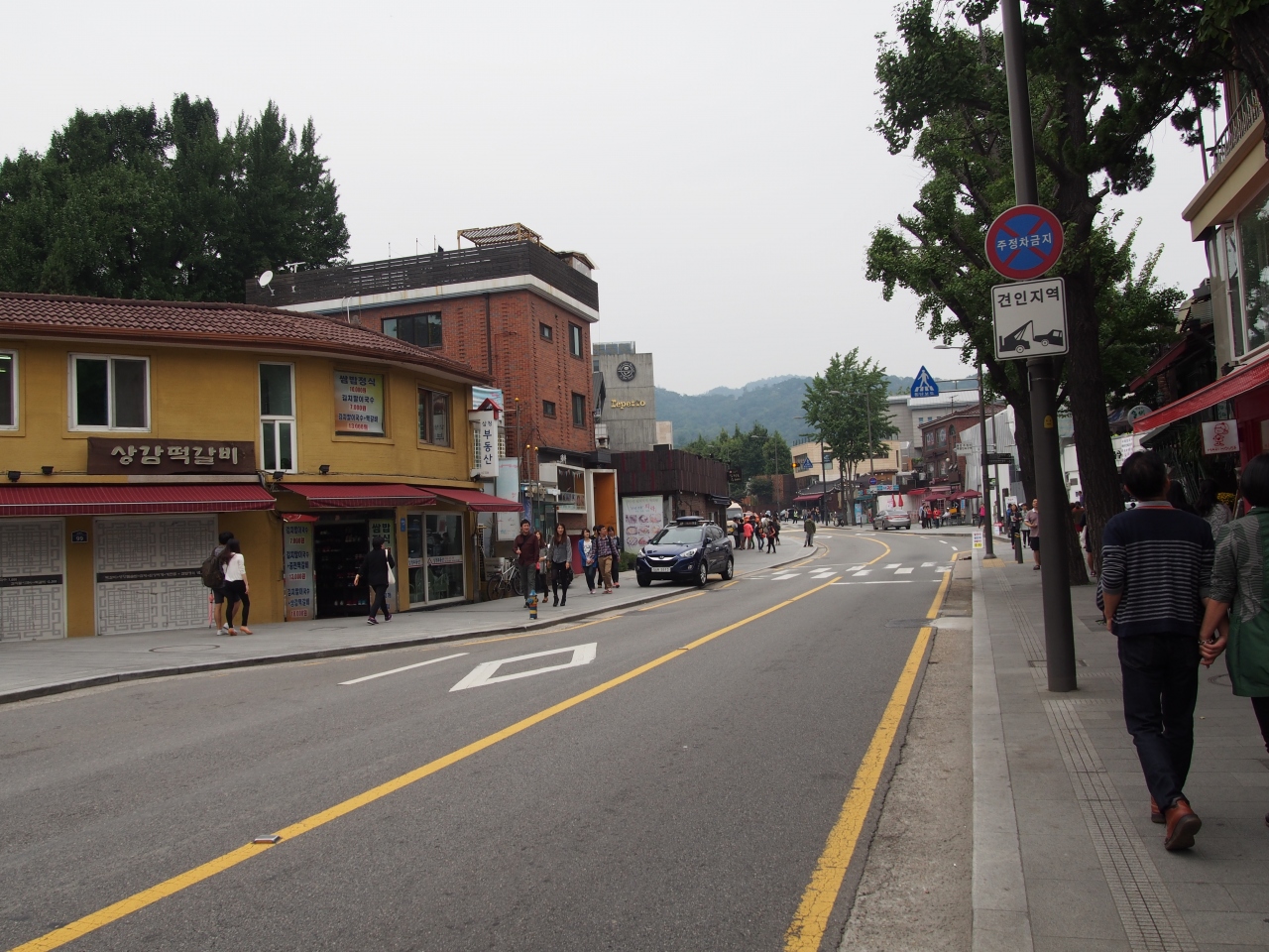 2車線の車道をはさんで並木道のようになっていて、ハンドメイドのアクセサリーやおしゃれなカフェ、靴屋さんなどがあります。少し大人の雰囲気です。景福宮や北村韓屋村とも隣接しています。こちらを観光してからショッピング、カフェでお茶のコースが良いと思います。