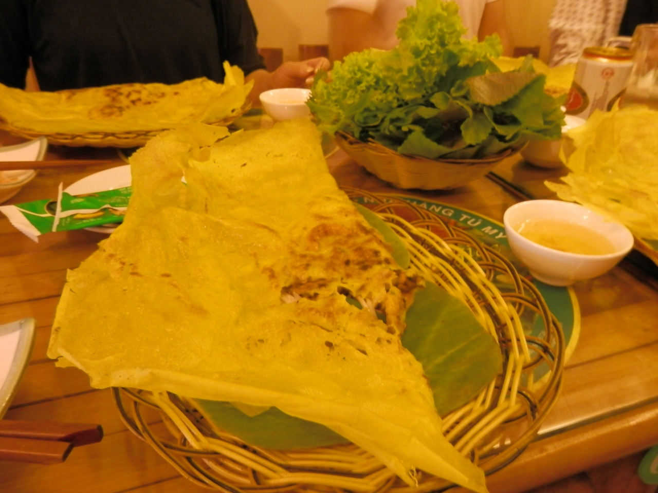 薄い卵焼きにいろんな具材をまいて食べるお好み焼きみたいな感じでしょうか?ベトナム料理は意外と生野菜をたくさん摂るんだなという印象でした。チェーというベトナム風ぜんざいはいろいろ豆や、求肥みたいなのや、寒天みたいなものが具沢山でした。