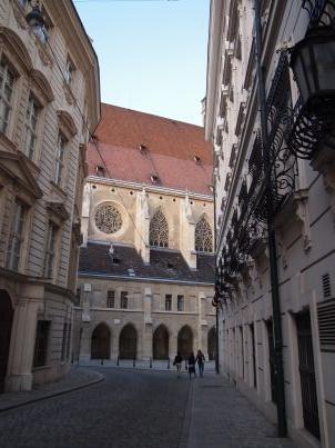 アウグステーナ教会へ行った時は美術史博物館からスタートしマリアテレジア広場→自然史博物館→王宮、そしてこちらの教会へ到着しました。教会の内部は白で統一されており