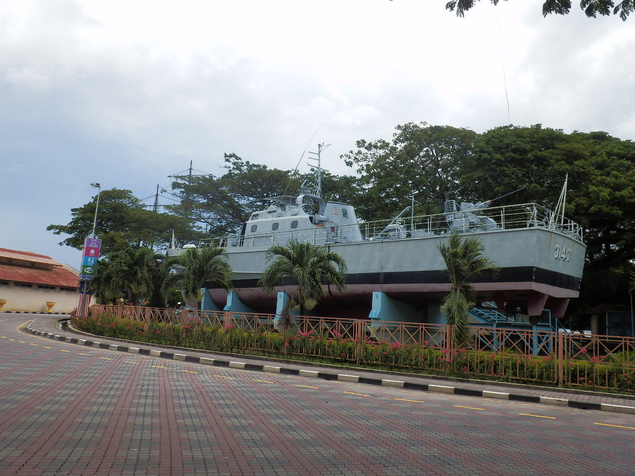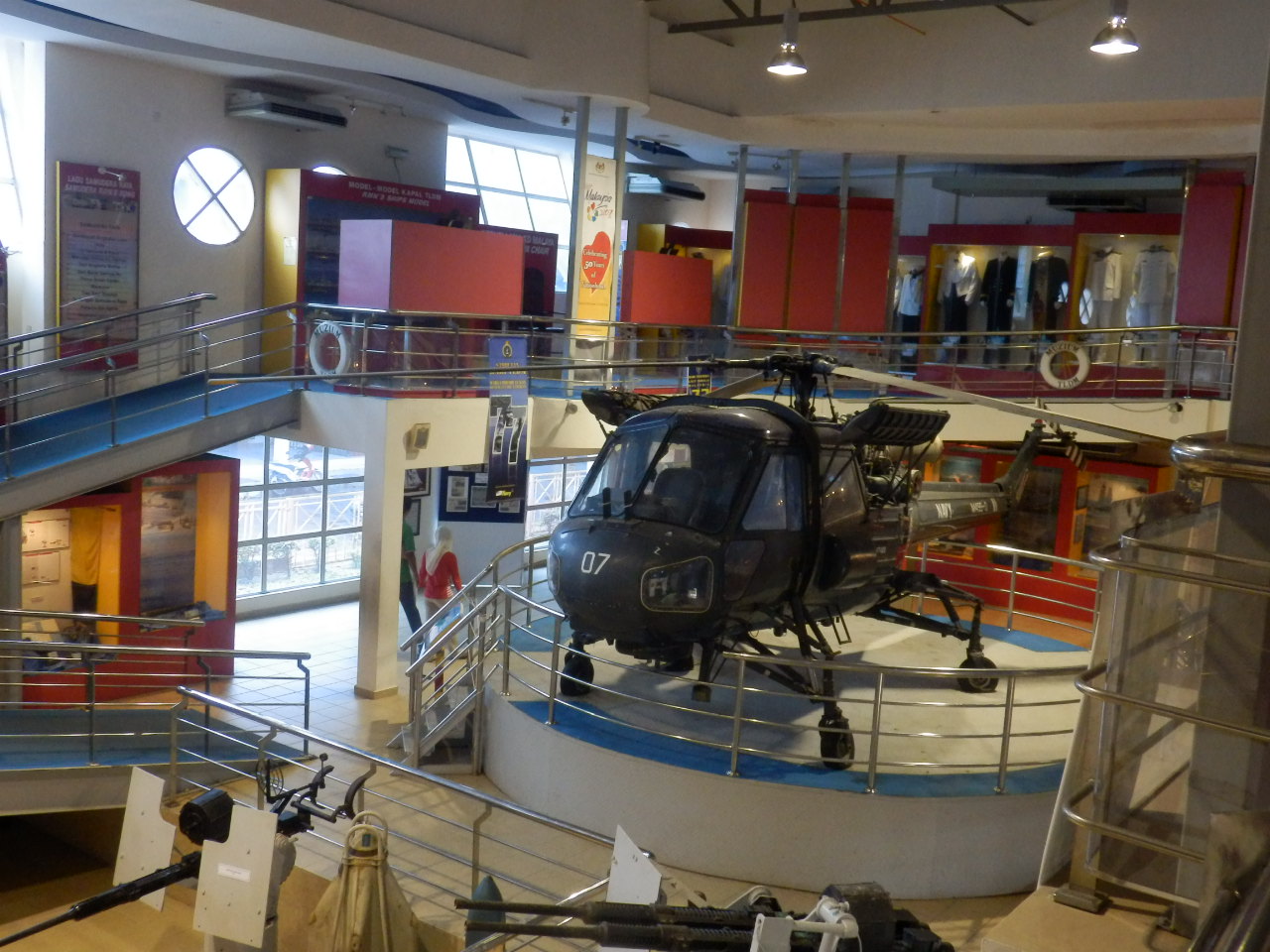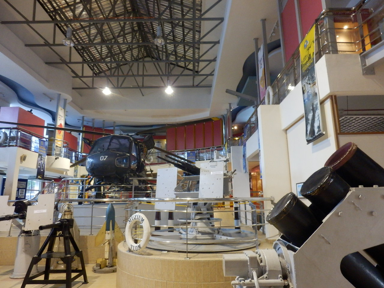 大きな船の模型がある海の博物館の通りを挟んだ向かいにあるのが海軍博物館です。入場券は窓口で販売されておらず、海の博物館の入場券を持っている人のみ館内に入れるようでした。大きな建物は中央が吹き抜けになっていて、外周は2階建てでぐるりと回るように見学するコースとなっていました。中央にはヘリコプターの模型、壁際には海軍の制服などがあり、なかなか楽しめました。また、建物の外には飛行機も展示されていて、そちらも見学できました。