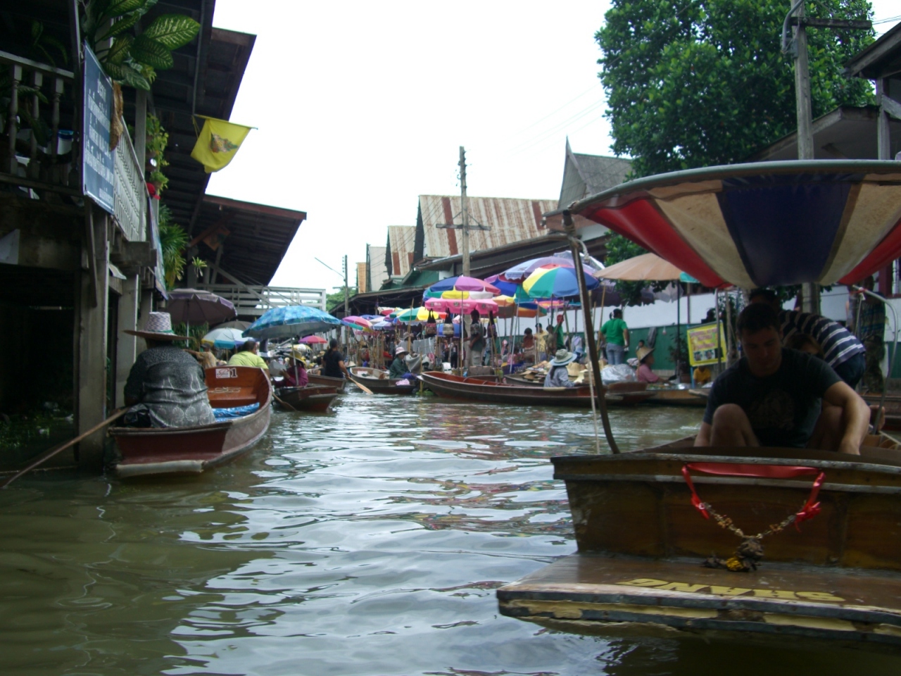 両側に生活観のある家々を見ながら狭い水路を通り、水上で買い物をする