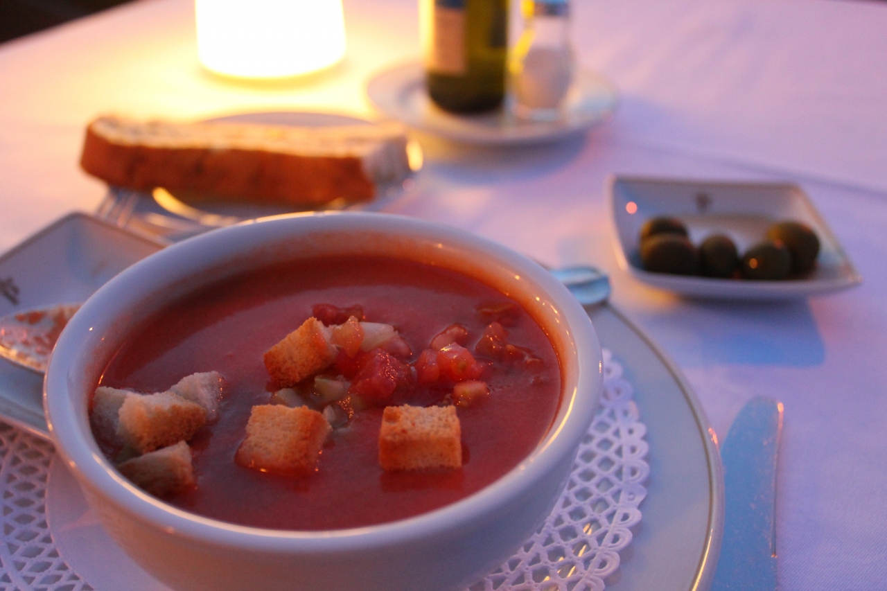 コースメニューは約30ユーロ。前菜にガスパッチョ、そしてメインはトレドの名物料理のペルディス(野うずら)の赤ワイン煮込みをいただきました。