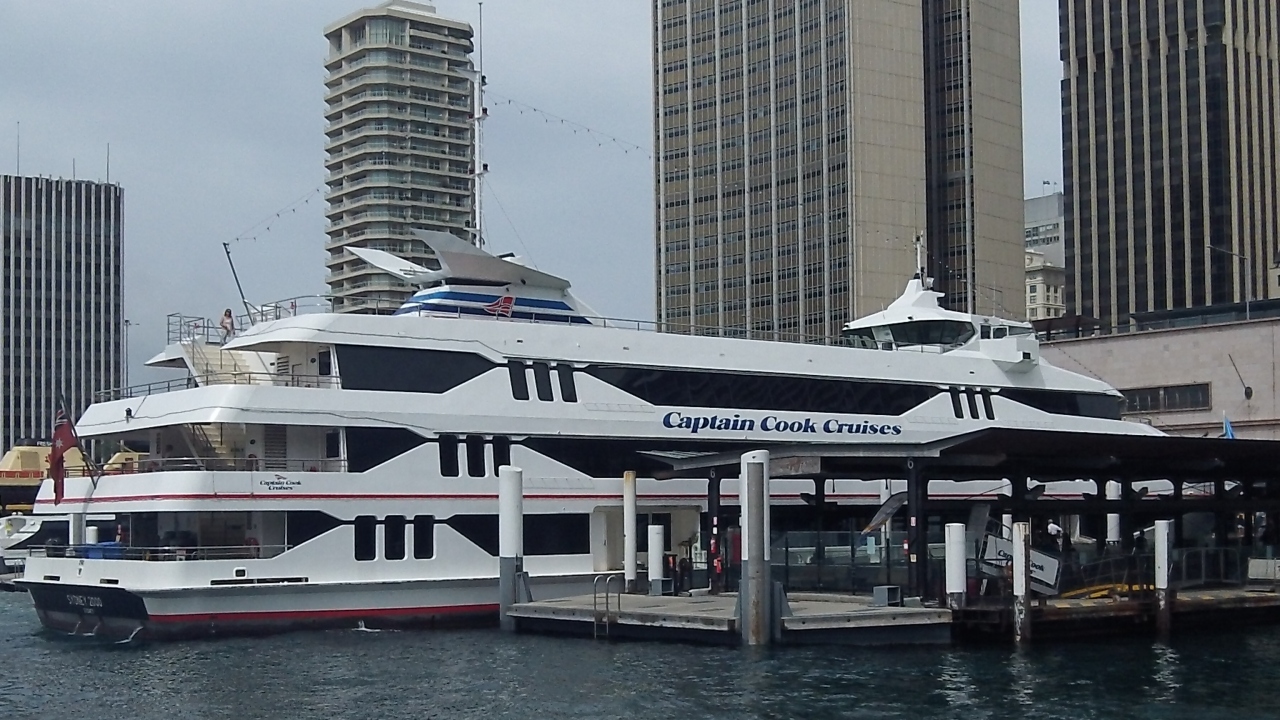 シティレール:サーキュラー・キー駅下車してすぐ、桟橋左端(ハーバー・ブリッジ側)に停泊中、キャプテンクックディナークルーズ(18:00~22:30)夜景の綺麗なハーバー・ブリッジ、ライトアップしたオペラハウス、シドニー市内の高層ビル群などが楽しめる。