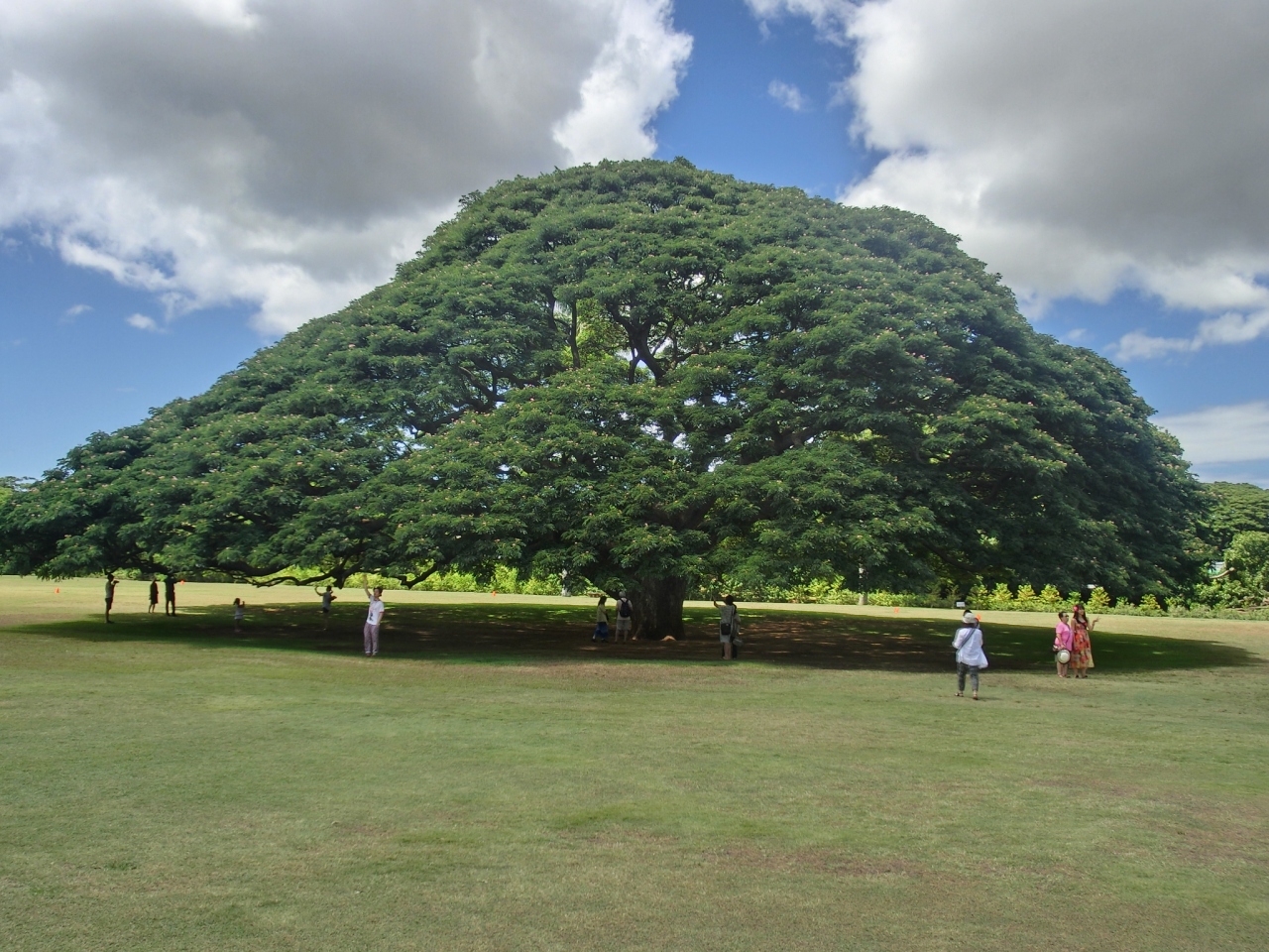 この木何の木♪で有名な日立の樹があるモアナルアガーデン。モンキーポッドという木で、ハワイには至る所にありました。しかし、広い公園内に大きくそびえたつ姿は圧巻でした。おみやげやさんにはこの木なんの木のプリントTシャツもありました。