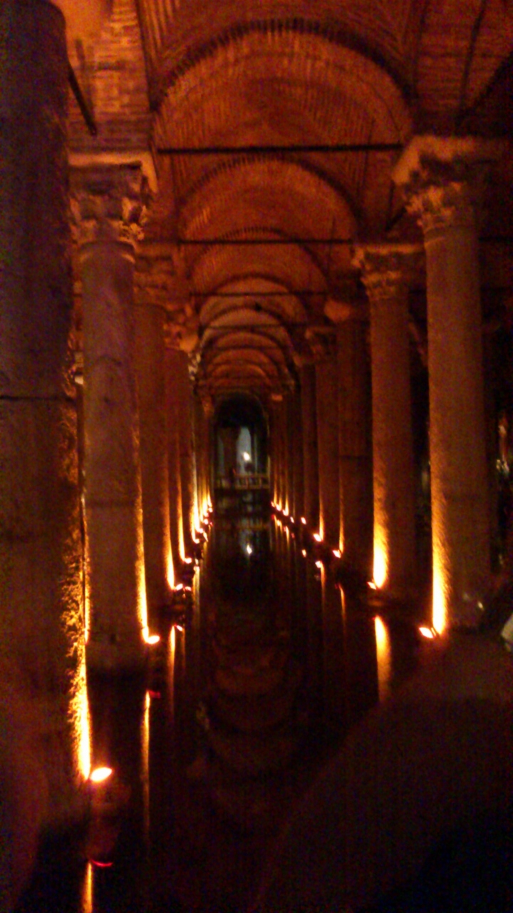 ローマ帝国の貯水池だった場所です。ローマ帝国の貯水槽の中でも相当大きいようで広い!ここでもローマはやっぱりすごいと感心してしまいました。その建築はあまりにも宮殿のように美しく、水が幻想的に柱を映し出しています。ライトアップが見事です。奥に行くと巨大なメデューサの顔が無造作に置かれています。出口近くにカフェがあるので、なんと、地下宮殿でお茶も出来るのです。贅沢な時間です。