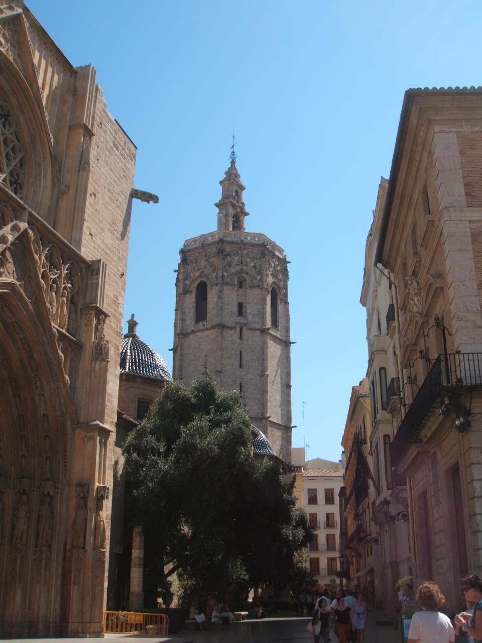 ミゲレテの塔が見えてきます。ミゲレテの塔の横にはカテドラルがあります。カテドラルとは、キリスト教の大聖堂のことです。このカテドラルは、14世紀から15世紀の建物で、キリストが最後の晩餐で使ったといわれる聖杯が納められていることで有名です。