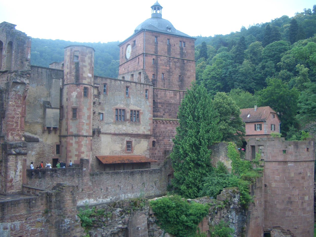 ハイデルベルクを訪れる目的は、やはりハイデルベルク城です。最寄り駅からさらにバスに乗って向かいます。お城に行くにはケーブルカーを利用します。急斜面を一気に上っていくのであっという間に着きます。お城は所々崩れていて、いかにも要塞といった趣です。映画やゲームに出てきそうなお城を自分が歩いていると思うと不思議な気持ちになります。お城からの絶景は筆舌に尽くし難く、一日をハイデルベルク城で過ごしたいと思ってしまいました。ドイツの素敵な建物と、川に反射した太陽の光の美しさ、頑丈な橋の下を通る船など、本当に絵になります。