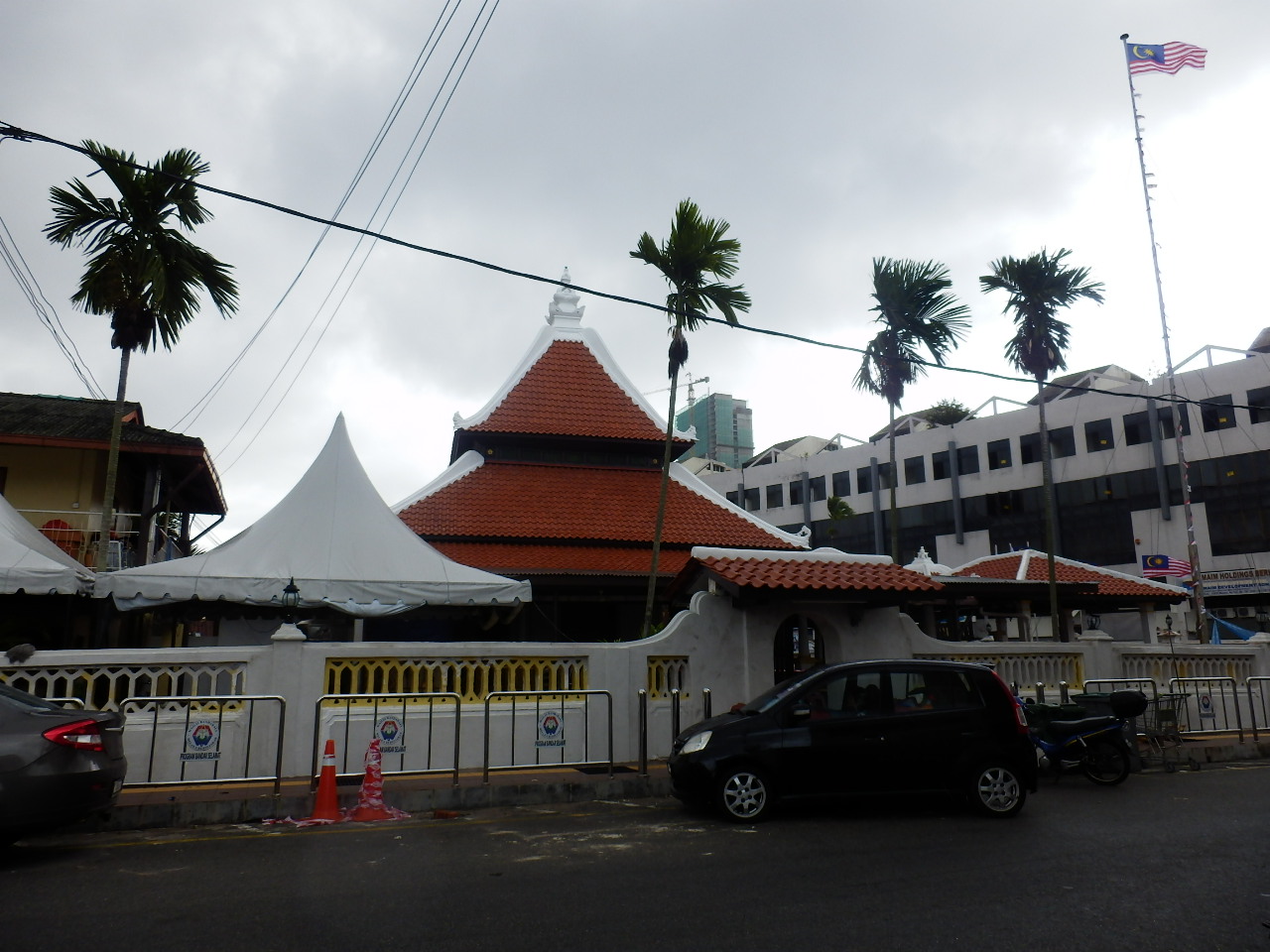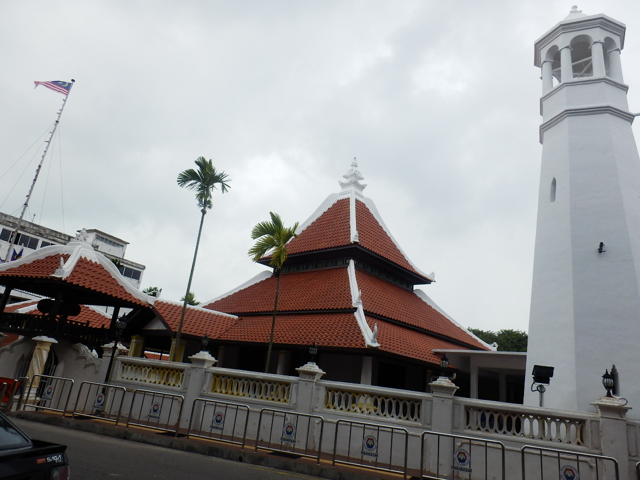チャイナタウンの中心部を抜け、北へ進んだ場所にあるイスラム寺院で、1728年に建設されたマレーシア最古のモスクだそうです。白い塔が目立つカンポン・クリン・モスクに比べて地味で、立地の悪さから、観光客はほとんどいませんでした。こちらもカンポン・クリン・モスクと同様、モスクらしくない建物で、屋根はドーム型ではなく三層構造でした。私が訪れたときは工事中で中に入れず、外から眺めるのみでした。
