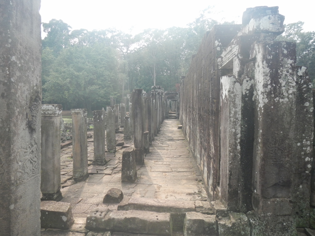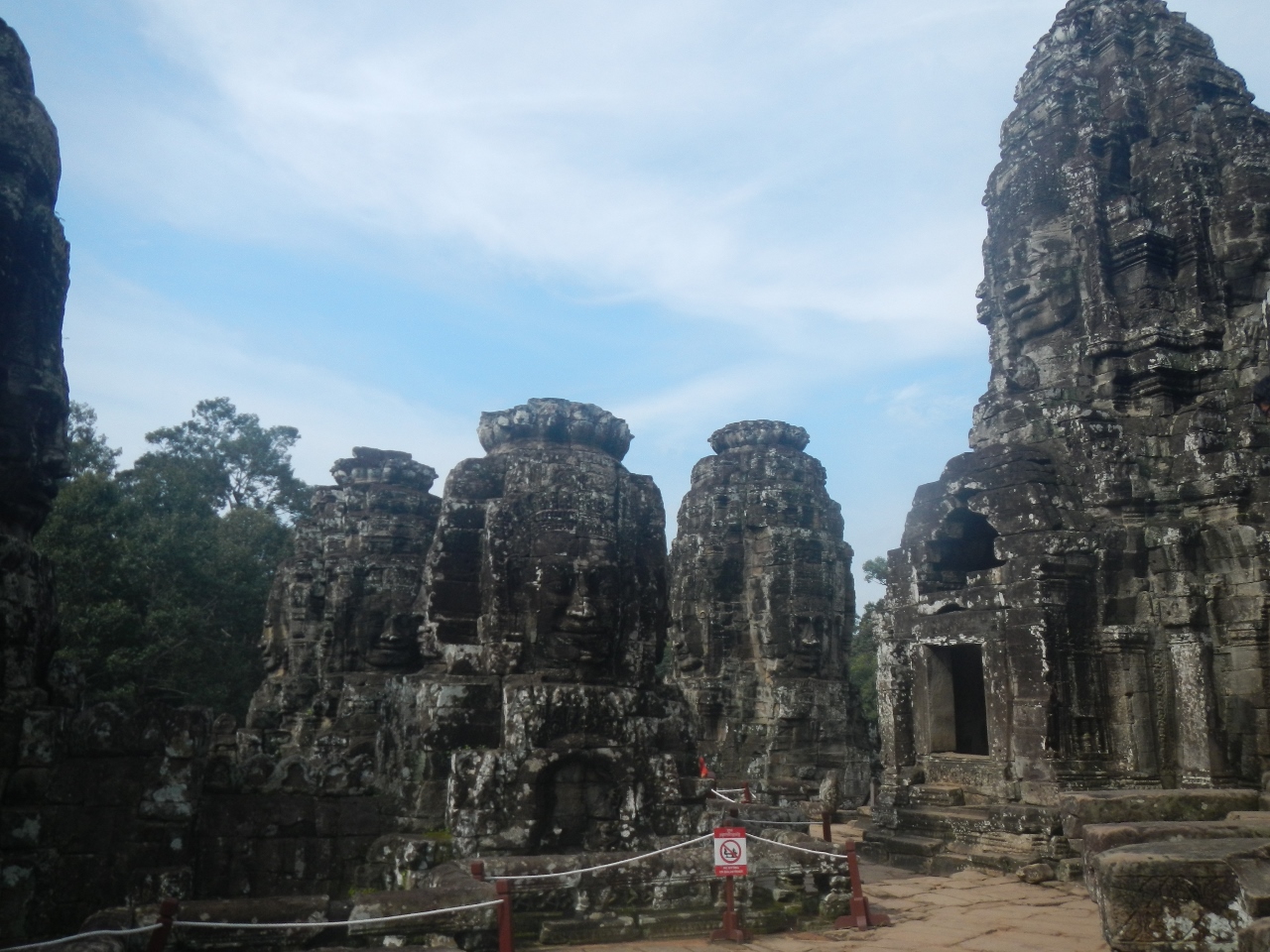 観世音菩薩の4面塔はテラスに49、塔門の5あるとのことだ。なんでこんなにたくさんの観世音菩薩像を彫ったのだろうか、などと考えながらテラスを歩く。どこにいても観世音菩薩に見られているようで不思議な気持ちになる。