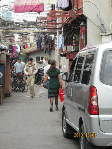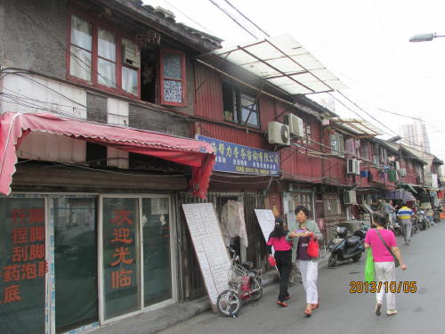 蓬莱路はB地区の凝和路との交差点を西へ入りました。ご覧のように古い家が残った住宅街です。古い住宅にはトイレがありません。夜間は“おまる”馬桶と呼ばれる入れ物に小便を入れ朝になると小便池に捨てに行きます。朝、パジャマ姿で馬桶を下げてる姿は下町の風物詩とも思われます。いささか匂いますが。