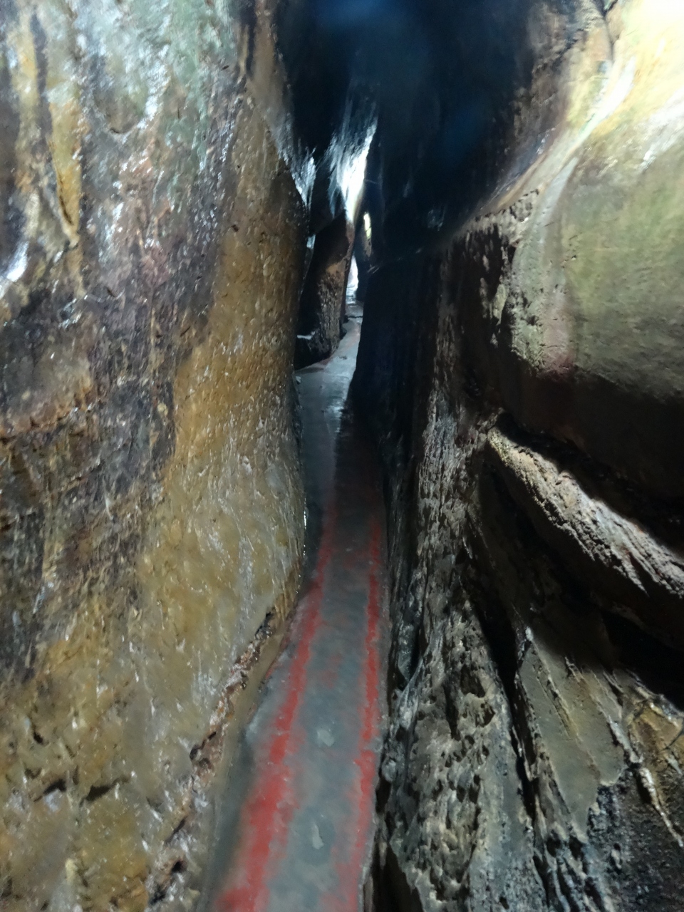 細長い通路は非常に狭く、人が一人通るのもやっとで、背中にしょった荷物が途中で通路の岩と岩に挟まってしまって焦りました。