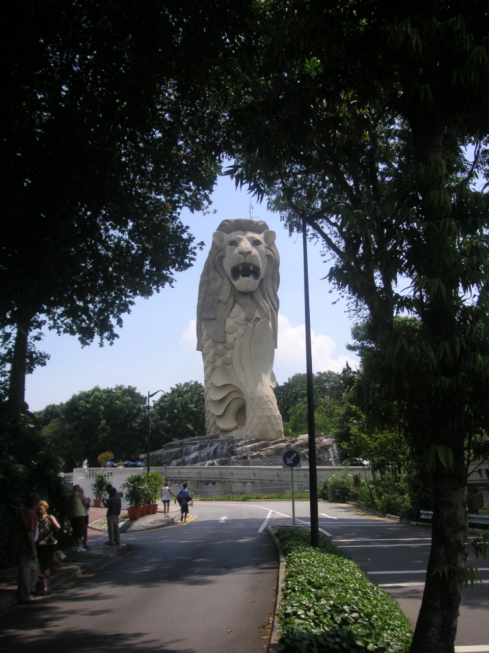 ビボシティからモノレールで行ける。またはロープウェイでアプローチしても良し。シンガポールには3つのマーライオンがあってマーライオン公園の2つとこのセントーサ島の1つ、一番巨大で内部を登ると口の部分に着き、眺望を眺めながら記念撮影。これ定番。