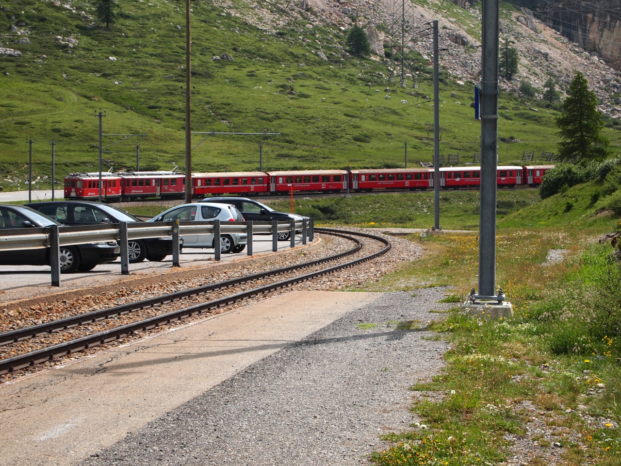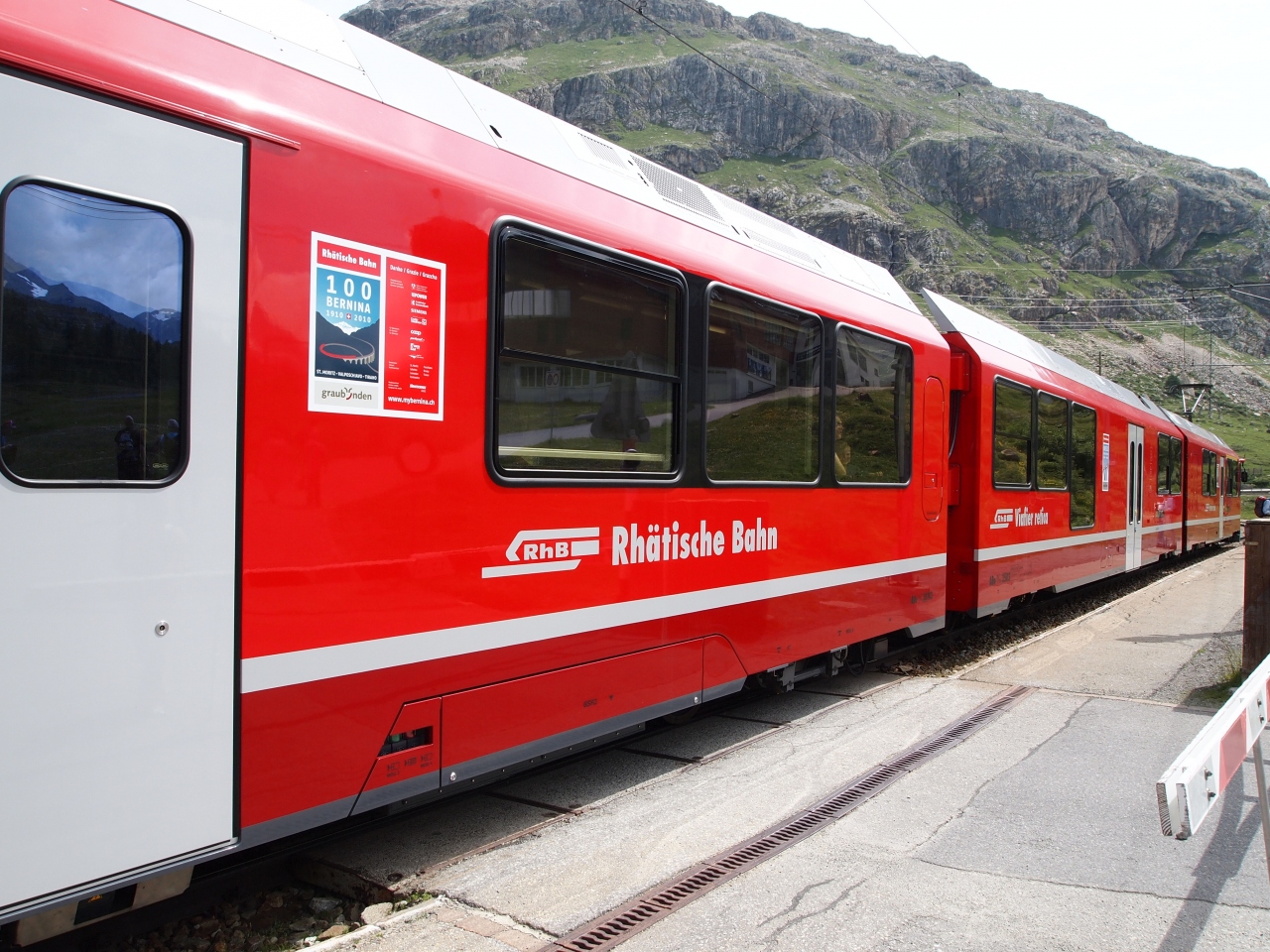 その間のアルプス、スイスらしい風景の場所を走る車窓を見ていくのは