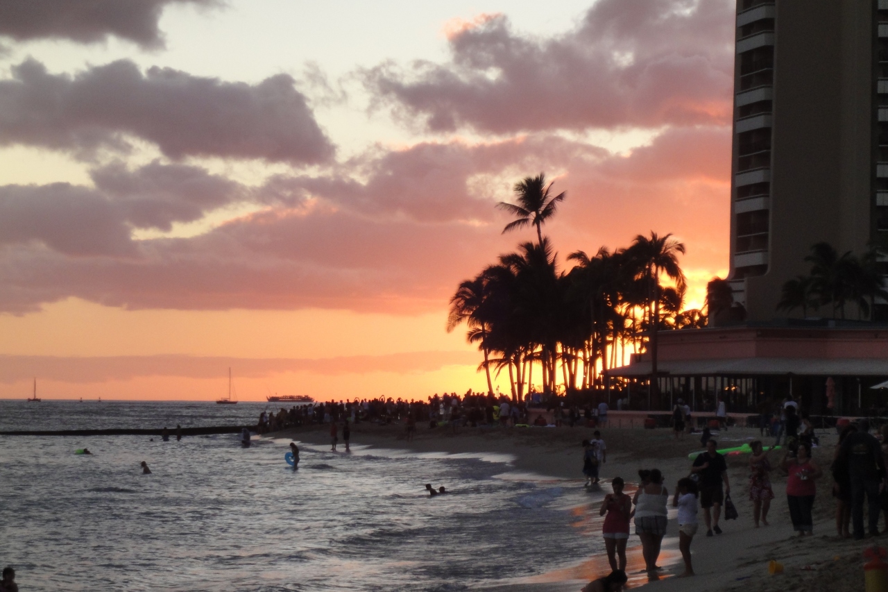 とっても綺麗な夕日です!!【ワイキキビーチ】