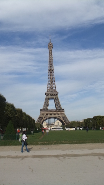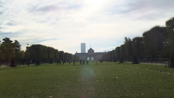 シャイヨー宮からイエナ橋を渡りエッフェル塔に到着。エッフェル塔の下で少し寛いでから塔の前面に広がるこちらのシャン・ド・マルス公園を突っ切って平和の壁へ。秋のパリは初めてでしたがこの日はお天気も良く散策には最高の日でした。相変わらず人気抜群のスポットですが、広々として気持ち良かったです。