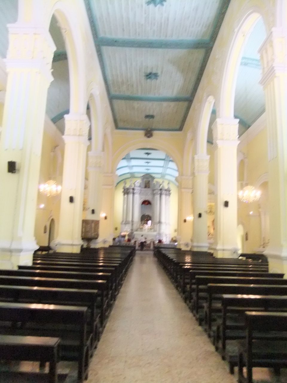 セナド広場方面から行っても、ドン・ペドロ5世劇場方面から行っても、坂道を登るのでちょっと疲れますが、パステルカラーのかわいらしい建物が並んだ一角に建っていて景色は楽しめます。